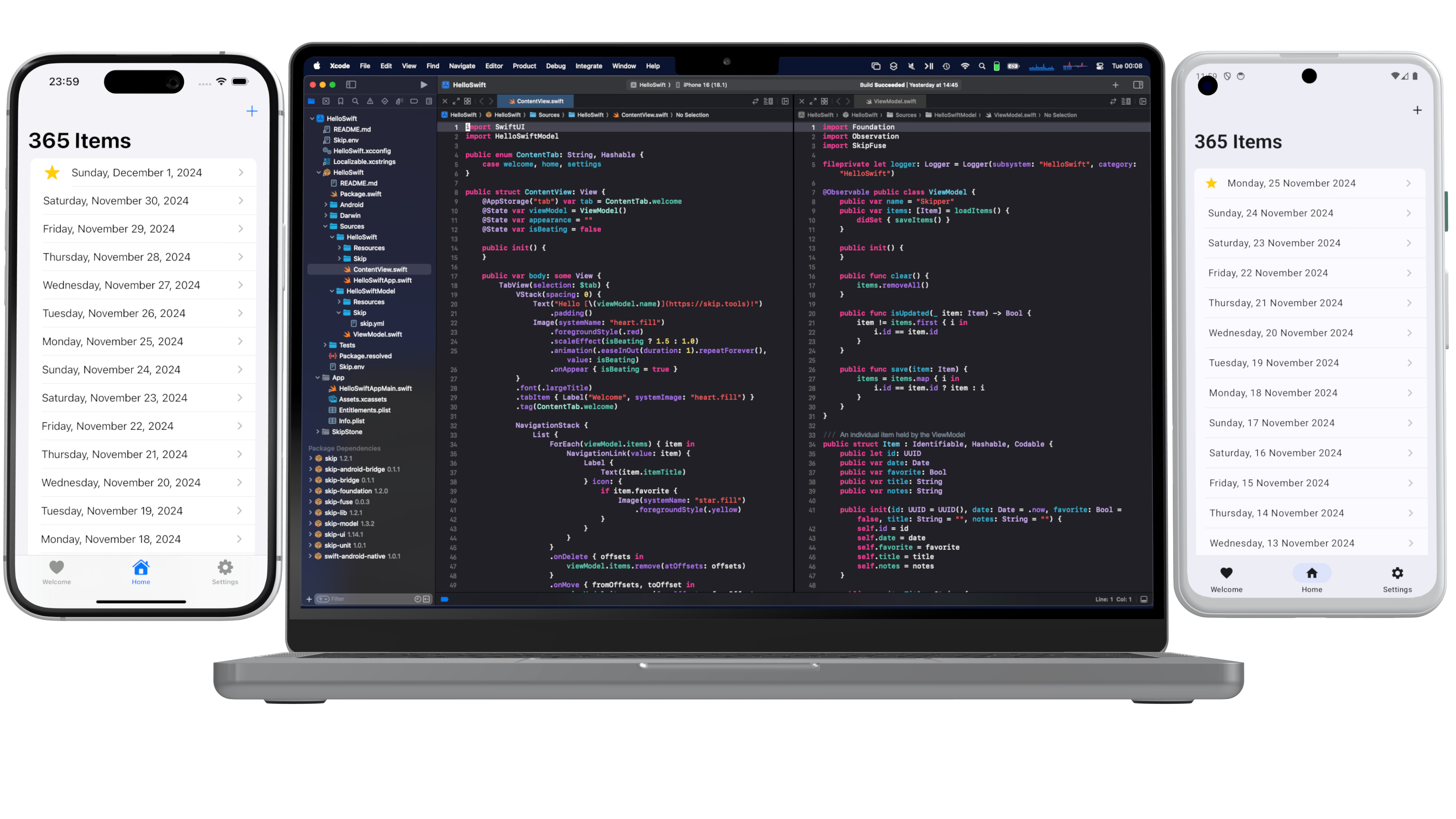 We are pleased to unveil the culmination of all of this work: Skip 1.5 now has the ability to create a 100% native Swift and SwiftUI app for both iOS and Android! You can now enjoy the safety, efficiency, and expressiveness of pure Swift throughout your entire cross-platform app, including the ability to tap into the vast ecosystem of Swift packages to support your app development.
